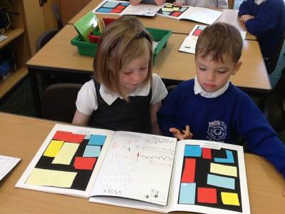 After exploring his work, the children got the chance to make their own Mondrian-inspired masterpieces! Using rulers and coloured paper, they created beautiful pieces of art by arranging rectangles and squares, and carefully choosing where to add their primary colours. The results were fantastic – bright, bold, and very creative!