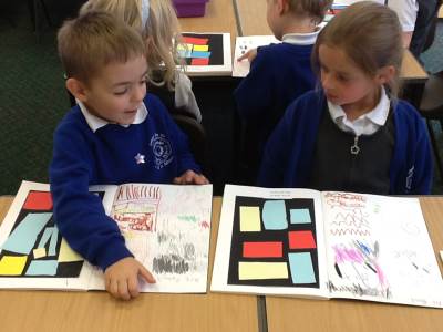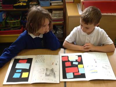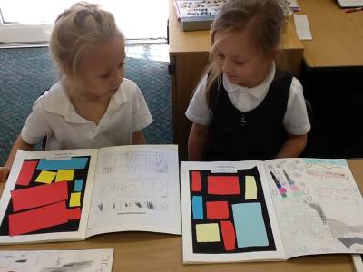 After exploring his work, the children got the chance to make their own Mondrian-inspired masterpieces! Using rulers and coloured paper, they created beautiful pieces of art by arranging rectangles and squares, and carefully choosing where to add their primary colours. The results were fantastic – bright, bold, and very creative!